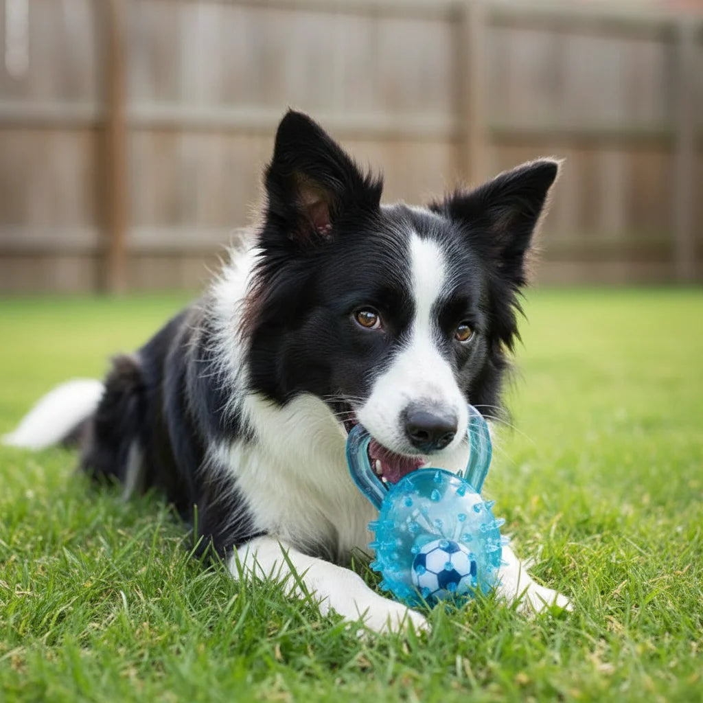 Pet dog toy with Football and Soft Thorn, made of soft rubber, suitable for large, medium and small dogs.